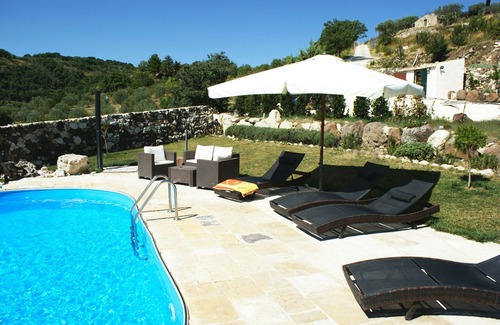 3 holiday apartments in comfortable equipment with 90m² terrace, barbecue, satellite TV, Internet possibility, large living-dining-kitchen with fridge, stove, (dishwasher in the large apartment) bathroom in modern design. 2 minutes from the museum village Buscemi at almost 800m altitude in the Iblei mountains. Nestled in the nature reserve, surrounded by countless hiking and trekking trails. Mountain bikes are also available (for a small fee). Bathing in the waterfall of Cava Grande only 25 min. away. Enjoy the tranquility and relaxation. Completely undisturbed they can unwind here once. You can start directly from the house walks through Pantalica or in the nearby town of Palazzolo Acreide (UNESCO world heritage) drive or walk. With private 8x4m pool and poolside sundeck.