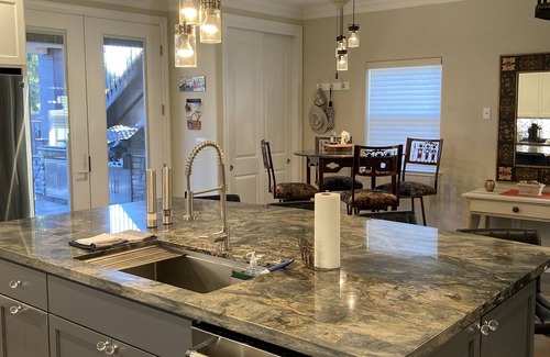 Looking for a private, quiet stay-cation? Our house will fill the bill for you! The fruit and nut trees are all very large and mature providing a country feel to this house. It is behind a private fenced area with large yard. Interior kitchen with gas cooktop and electric ovens (2), complete chefs kitchen supplies, open floor plan. There is a complete outdoor kitchen with grill, dishwasher, sink, and large seating areas. It’s quiet and peaceful.
