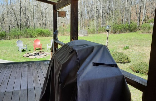 Secluded up on a mountain one mile off the interstate. Just 20 minutes from downtown Lewisburg 35 minutes to The Greenbrier and 35 minutes from Beckley. 30 minutes to the Hinton area of the New River Gorge and Sandstone Falls. It takes about 60 minutes to get to the Gorge bridge and Fayetteville area. The cabin is cozy and comfortable and has a beautiful mountain view with a secluded back patio and yard.