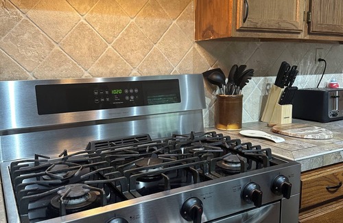 UNDER NEW OWNERSHIP/HOST - After a long day of outdoor activities enjoy relaxing in this comfortable 2-bedroom, 2-full bath house with a king bed, queen bed, and a loveseat sleeper sofa. Location is close to everything Cloudcroft has to offer. This home, Coyote Retreat, is around the corner from Zenith Park which offers pickleball courts, tennis courts, a playground and an ice skating rink in the winter. We have 4 pickle ball rackets and balls for your use. Please return them to mudroom when finished using them. There is a $50 charge if they are lost or stollen. This house is also walking distance to shopping and restaurants. If you’re wanting to stay inside you can cozy up by the wood burning stove/fireplace. Cook in the large kitchen fully stocked with dishes and pans. Watch a movie on the smart tv or play board games. Home is centrally heated, but there is no AC. There are three floor fans and space heaters if you need them. Coyote retreat has a large laundry/mud room with full size washer and dryer and enough room to store your outdoor gear. There is an outdoor patio that can also be accessed from the main bedroom. It has a picnic table with umbrella and small propane grill. (Please follow local fire safety laws. Clean and cover grill after use, including grease tray. Dump cooled grease in trash not the sink.) There is a front porch with chairs where you can enjoy the ponderosa pines, maple trees or the elk and mule deer passing by. There are two parking spaces, but not enough room for trailers and there is no street parking available. Also know that there is a small steep slope to get to the parking area that may be tricky in winter. We recommend 4 wheel drive. **Maximum stay is 21 days** We look forward to hosting you at Coyote Retreat.