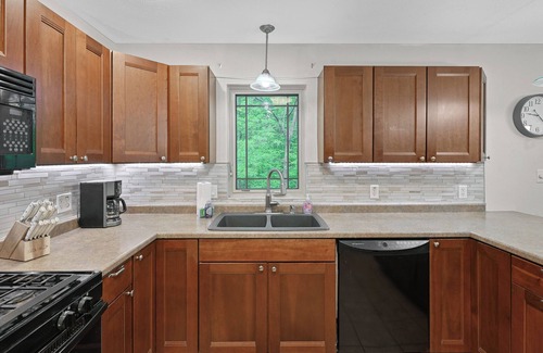 Welcome to your home away from home! This inviting 2-bedroom, 2-bath upper-level unit is the perfect escape for couples, friends, or small families looking for a relaxing getaway. Nestled against a wooded backdrop, you'll enjoy the peace and privacy of nature with modern comforts inside. After a day of exploring, enjoy a night on the deck or by the shared fire pit in the wooded backyard. Whether you’re here for adventure or rest, this charming retreat is the perfect place to relax!