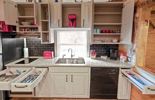 Custom built to be used exclusively as a short term rental. It was handcrafted using tongue and groove pine milled here in Alabama. All of the oak and pine trim were milled in Virginia using my stepfather's personal sawmill with lumber harvested both from my property here in Alabama, and my families property in Virginia. Even the door\drawer pulls and switch plates were hand forged in PA by an Amish guy at his home forge in his basement.