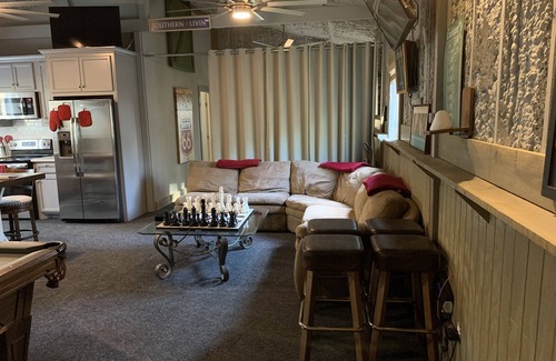 This is a Man-Cave, yet has everything the rest of the family can enjoy as well... swimming pool access, pool table, dartboard, chess, cards, dominoes, ping pong, and corn hole... plus two (2) - 55" Roku TVs with a sound bar! We are so close to Lake Conroe, there is a boat ramp in the neighborhood, and a boat pass is available upon request! And we've added a nice above-ground swimming pool in the backyard, but PLEASE NOTE the pool area is fenced in and accessible to this property AND two other rental units next door. We have room to unhitch your boat or trailer or you can back it in on the right side of the building, where you enter the back patio and building. The yard is completely fenced in, when all gates are closed, so it's good for your pups.