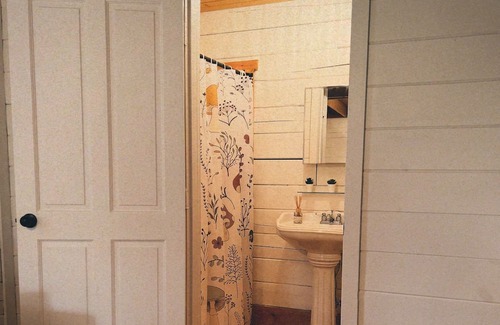 𓆱 Our secluded cabin offers a private and peaceful getaway from everyday life. Nestled among trees and surrounded by nature, you'll feel all your stress melt away.