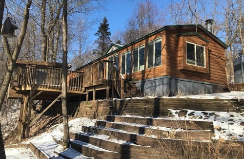 Wonderful deck with beautiful views of Loveless lake. Enjoy a cup of coffee in the morning from the deck or "treehouse". Just 3 miles from Balsam Lake including golf courses and restaurants on the water.