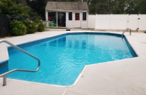 The fenced in back yard invites you to swim, lounge, and relax every minute of your stay! The heated pool is open from Memorial Day to October (New England weather permitting). Grab some pool noodles and floats from the pool house for the kids and throw some steak on the 2-in-1 charcoal/propane BBQ grill. In the evening, gaze at the stars while you relax with your family by the fire pit.
