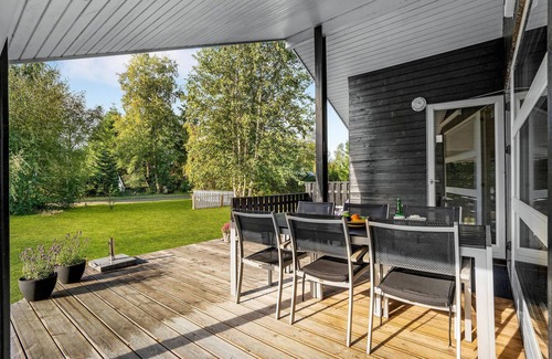 The cottage is equipped with many facilities such as a jacuzzi and sauna. From the living room you also have access to the large, partially covered and screened terrace. On the lawns there is plenty of space for games and ball games - why not gather the whole family for a fun outdoor game?