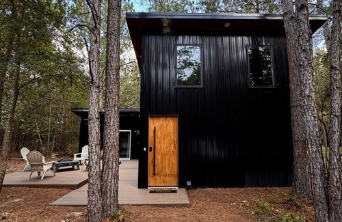 Escape to this modern yet cozy home that is nestled amongst the pines. Spend a cool morning sipping coffee on the deck or taking a walk on the wooded paths. Snuggle up and chill with a movie or enjoy a family game night!