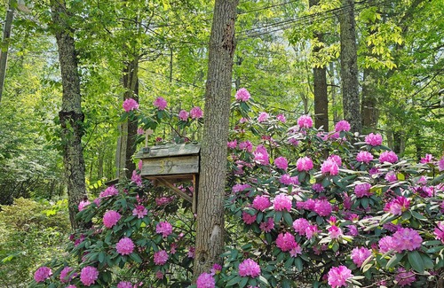 Look no further than Kaitlin's Hemlock for Asheville, NC cabin near Biltmore House. This delightfully decorated and spacious two-bedroom cabin is ideal for a quick romantic getaway or for a long-term stay. Pine-paneled cathedral ceilings add to the ambiance of this cabin and coziness of the great room. Cuddled up with a book on the leather couch or easy chair and enjoy the soft surroundings of the cabin. Discounted monthly rates are available.