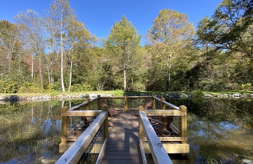 Enjoy morning coffee and afternoon wine:30 (sign up required if interested in wine:30) from the deck overlooking the beautiful Nantahala Forest. Cozy up to the fireplace in the evening as the sun goes down. Enjoy the grounds with a hiking trail, a firepit at the pond, and a dock to feed the mallards and the trout, and enjoy your coffee or wine in the courtyard. Common areas in the nearby Historic Glen Choga Lodge are also for you to enjoy, including the library, the parlor, and the living room with a large wood-burning fireplace.
