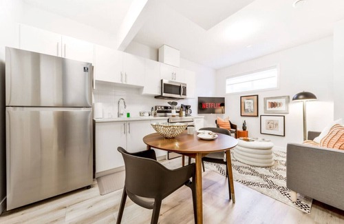 ✦ Complementary WiFi, tea and coffee. Your kitchen comes fully loaded with brand new stainless steel appliances such as a microwave, fridge, stove and dishwasher along with glasses, mugs, dishes, cutlery, and more!