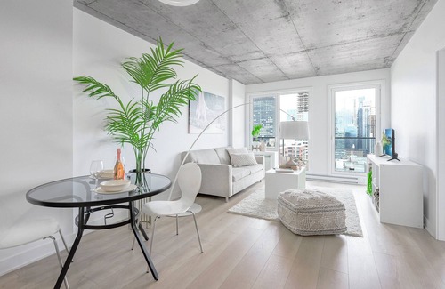 Cozy up at this warm one-bedroom home right in the heart of downtown Montreal with spectacular views of the skyline right from the comfort of your living room.