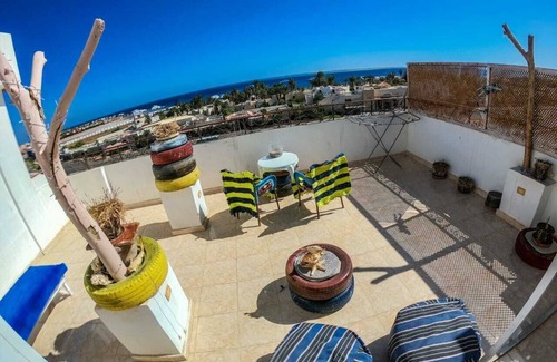 The rooftop is perfect for couples or individuals seeking privacy, relaxation, and sunny holidays in Safaga. It's conveniently located just 2 minutes by foot from kite-windsurf, diving Centers, and the beach. The house has two rooftop apartments facing each other in the same floor, and this one is on the left side with a front view
