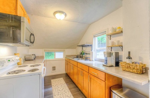 Nestled along the tranquil Pipers Creek, our charming Creek-front Crown Hill Craftsman offers a delightful retreat immersed in lush greenery. With a fully-equipped kitchen, ample storage, and recent upgrades, this 2-bed, 2-bath home provides a serene space to recharge. Plus, enjoy the convenience of coin-operated laundry facilities on-site. Step outside to the picturesque greenbelt and unwind in the hot tub—a perfect escape from city life yet conveniently close to all amenities. Just a 3-minute walk to QFC for groceries, and a few steps more to Piper's Creek Trail, your gateway to nature and stunning Puget Sound views at Carkeek Park. All of this within a stone's throw of Seattle's finest dining, bars, breweries, and entertainment in Ballard, Fremont, Phinney Ridge, and Greenwood. Experience the perfect blend of tranquility and convenience in this Creek-front haven.