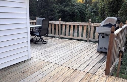 - Deck with seating, telescope for stargazing, grill, and creek view/sounds