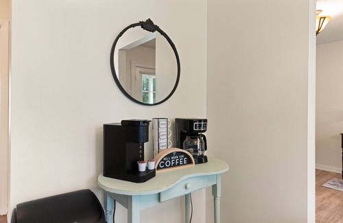 It includes a fully stocked kitchen with a dining table inside and one on the back patio. It is centrally located in Brunswick, close to shopping and restaurants. There also is a desk for those that can work remotely, so you can work and still be a short drive to the beaches.