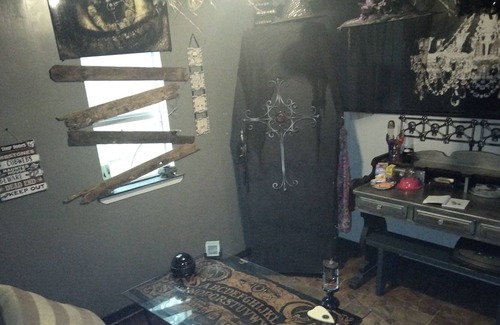 This is not for the weak at heart!This is a "creepy"experience!420 friendly,private,fenced yard!!If you like Halloween or Horror movies then you found the right spot!From Ouija board table,haunted vibe