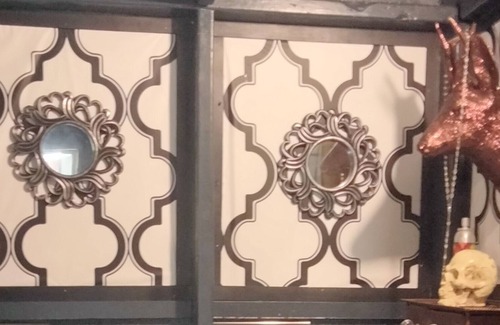 This is a one of a kind space nestled under large oak trees and secluded behind your very own privacy fence! This is perfect for a Halloween lover, as we have a coffin as a closet, a Ouija board coffee table! Not for the faint of heart!
