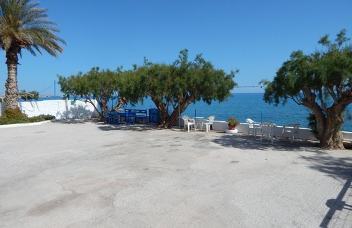 It is suitable for couples,companies and big families offering quiet and privacy overlooking the big blue of lybian sea and Crissi island. It is located within a private yard on the sea side with shallow sandy beach ideal for families with small kids. The house is situated in the quite area of Stomio Lasithi (Ierapetra) and it is 10 minutes drive from the centre of Ierapetra,3 minutes from village Gra Lygia while sea side village Myrtos is also 10 minutes west of the house. Bus station is 100m near by the house to direction Ierapetra or Myrtos.