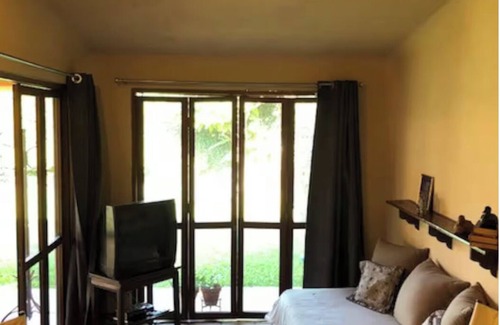 The cozy and Sustainable Bungalow is surrounded by a shared garden featuring a terrace and an independent kitchen area. The interior boasts a living room with a futon (TV/cable), and a queen-sized bed. Comfortable space for work and rest. Equipped with solar energy. It is located on a secure, closed street within a residential neighborhood, perfect for walking. Easy access to public transportation and taxi sites, just 15 minutes (by car or public transport) from downtown Cuernavaca.