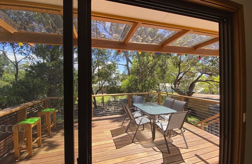 Keeping it simple in a mid-century modern styled open plan kitchen, dining and lounge room with open fireplace. Huge shady deck with BBQ and outdoor dining. The quirky second bathroom is a converted water tank, perfect after the beach. Two bedrooms one with a queen bed and the other bedroom has a double and a single. Plenty of room for family fun; the down stairs open undercroft has table tennis, and a big backyard with a fire pit. Walk to famous fishing spots at tranquil Lake Conjola where you can swim in the lagoon or at Manyana beach, 300 metres away. Fantastic surf break and kite board spot at Green Island 500metres away. A quiet and private spot. Pets welcome upon request. Bring your own linen and towels.