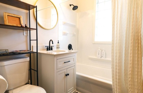 Welcome to our charming and meticulously cleaned 4-bedroom, 2-bathroom curated craftsman home! You'll feel right at home with our cozy and spacious living areas, perfect for movie nights with a mounted projector, vinyl listening sessions, board game nights, or mixing up a cocktail or two in our speakeasy room.