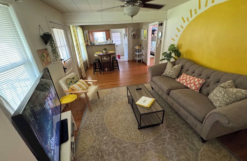 The Hilltop Cottage is all about the Sunshine State! There's a fun flamingo bedroom, a peaceful beach bedroom and a bright and sunny Florida room which doubles as a bonus room / 3rd bedroom. Original hardwood floors, tropical accents and natural light abound.