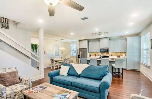 Make your next destination or layover Darien's Saltmarch Cottage. This bright and open design of newer construction features 4 bedrooms, 2.5 baths, porches for relaxing, and is within walking distance to local downtown eateries, shops, and the waterfront.