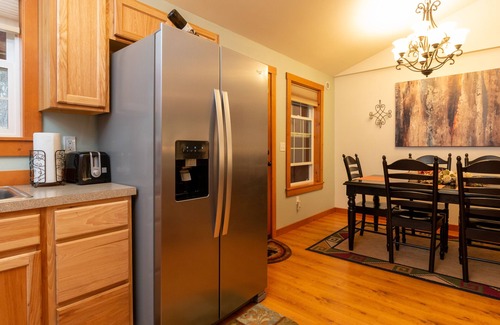 Relax in the woods, with trails to the river and the national forest out the backdoor. Near town, Mt. Rainier, and White Pass, Das Waldhaus blends a serene escape with access to adventure and convenience. Share fireside stories or soak in the hot tub after a day on the slopes or trails. Craft a meal in the well-stocked kitchen and unwind with movies or a family game night. Amenities like gig-speed internet, cable, wood fireplace, gas bbq, hot tub, outdoor fire pit, games, and more abound.