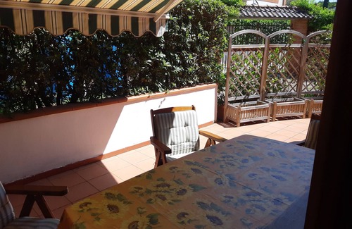 Ground floor apartment, bright, spacious, with outdoor patio with table and marquees.