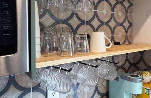 Gut renovated mid-century modern home with 4 bedrooms, 3 baths, 2 sets of washer/dryer and tons of natural light. Clean, calm with a 65" TV in the living room and a TV in every bedroom. Open layout is perfect for families or groups. Located in a quiet neighborhood near Denton’s universities and downtown. Enjoy style, comfort, and convenience all in one bright, welcoming space. This house is sitting on a big lot (0.9 ac), so you can park your RV, big boats, jets, trailers, and your big trucks. Please note there are 3 steps of stairs that leads up to the front door.