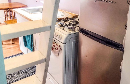 This gorgeous tiny house boasts a downstairs living room plus a double-loft, couch, kitchen, and bathroom. You'll love our beautiful mountains, fresh air, and peaceful environment. While this tiny home can accommodate up to 4 guests, we recommend no more than 3 adults and 2 children. This tiny home is inside what is currently an RV park. Rates are discounted during this time.