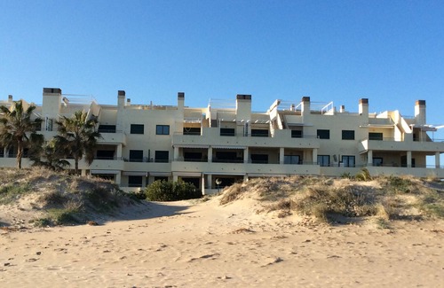 Garage (optional). Community pool and garden. 300 m. Equestrian Center of Oliva Nova and 800 Oliva Nova Golf. Barbecue on the terrace, overlooking the sea and the dunes with garden chairs, table and awnings. Concierge. A few meters, walking: super, pharmacy, hairdresser, laundry, restaurant, cafeteria-bakery, service company such as cleaning apartments, laundry and iron. FROM JANUARY TO APRIL, ideal season of Hipica (MET) of Oliva Nova for its proximity and good temperature. Urbanization with total accessibility for people with mobility problems, wheelchair and baby car. Excellent temperature all year round.