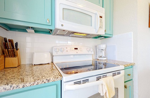 Step inside to find a centrally air-conditioned living space with tile floors, high-speed WiFi, and floor-to-ceiling windows that let in sunshine and views of the grounds. Begin each morning with a tennis match on the adjacent courts, then come home to enjoy breakfast at the bistro table outside on the deck. The kitchen is equipped with every essential at mealtime, while the indoor dining area provides seating for six.