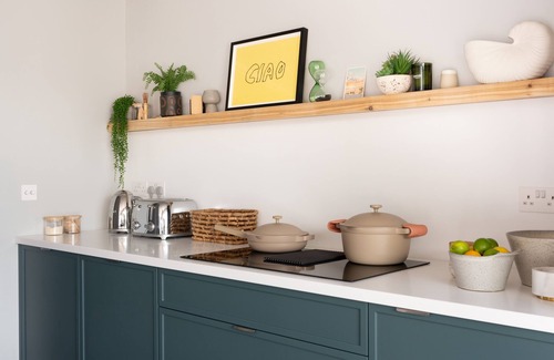 The kitchen features a breakfast bar and high end appliances including a Nespresso coffee pod machine, a fully equipped utility room with washer/dryer and a stunning dining area with table to seat 6. There is a gorgeous living room zone with cosy sofas and flatscreen smart TV. On the ground floor you will also find a beautiful bathroom with decadent freestanding bath, w/c and sink.