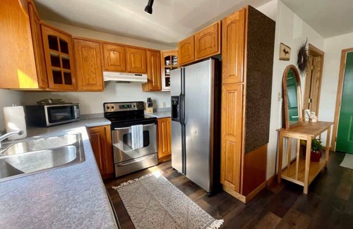 Escape to Village on Aurora, your downtown Ironwood retreat! Steps from the City Square and Historical Ironwood Theater, with Lake Superior's beaches and waterfalls a short drive away. Enjoy trails for hiking, biking, and more, plus EV chargers nearby. This condo features local Upper Peninsula decor, a king bed, and sleeper sofas, perfect for a comfortable stay in the heart of it all.