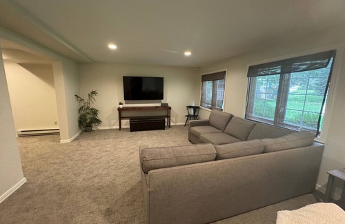 Come enjoy Brett Favre's old neighborhood! Book this spacious home for your next stay in Green Bay. The property includes a variety of living spaces, a large backyard with an upper and lower patio and many bedrooms. The kitchen is stocked with anything you would need to make a meal. A large Blackstone Grill is located just outside the patio off the kitchen as well. Kick back with a movie or game in one of the three TV rooms, or get some work done in the lower-level office space.