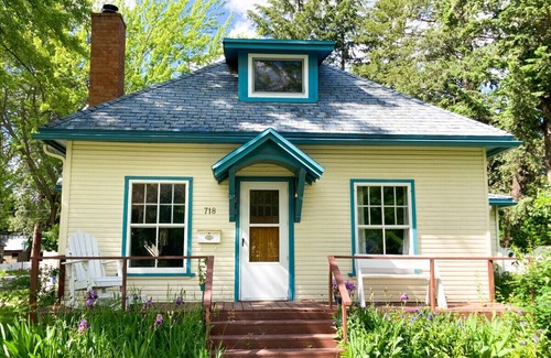 This immaculately clean, roomy, comfortable home away from home in an original Sandpoint neighborhood is adorned throughout with handsome wood finishes, beveled glass windows, and a classic claw-footed tub giving it a classic, old-fashioned ambiance alongside modern amenities.