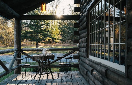 Duck Pond Lodge is an idyllic 3 bed, 1 bath log cabin with rustic chic styling and a storybook appeal, just 2 hours from NYC. Enjoy al fresco dining and sunset views from the deck, relax in the hot tub beneath the trees, or get cozy by a fire, indoors or out. It’s perfectly located for exploring arts events and nature spots.