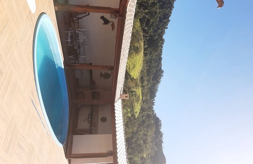 Great house located in one of the most beautiful landscapes of Paraty, surrounded by greenery, consisting of 2 bedrooms and a suite with air conditioning, living room with kitchen and 1 bathroom, walled with garage for 4 cars, pool with barbecue, wifi, in an open and contemporary concept.