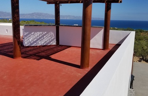 A Very Private area, Amazing views from this well appointed 2000 sq ft main level home with 3 bdrms, 3 bthrms-2 Ensuites. All Bdrms with King Beds. Huge open kitchen, a real pleasure to cook up a fine feast, or use the BBQ area & patio while others swim in the pool. Extremely large patio makes lounging around the solar heated pool or bbqing a real pleasure, the roof top bar is a super spot to sip coffee and watch the sun rise or slurp on a margarita while looking over the La Ventana Lights. One of the best spots in the world for kiteboarding and wind enthusiasts, mountainbikers, fishing, ocean sports, diving and more...