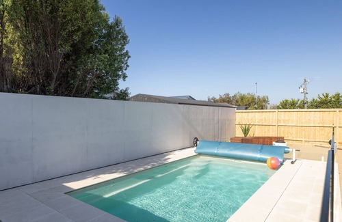 The covered outdoor area (with plumbed gas BBQ and seating for 8) overlooks the fully enclosed rear yard with the incredible private electric-pump heated swimming pool (5m x 2.8m; 1.2-1.65m deep) that also includes a low smoke firepit (no firewood provided). The Double Garage (with internal access and small sized multi-table for fuzbol, table tennis, air hockey and billiards) has space for 1 car, with additional space for another car in the driveway.