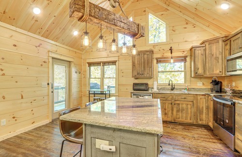 Leave the city behind in favor of fresh air and mountain vistas with a stay at ‘Quittin’ Time,’ a 2-bed, 2-bath cabin in Ellijay! Inside this Coosawattee River Resort vacation rental, you’ll discover a chef-inspired kitchen, bar-height seating in view of the Smart TV, and a cozy gas fireplace. Hit a hike at Amicalola Falls State Park, then keep the outdoor vibes going when you return home with a BBQ on the deck or s’mores by the fire pit. Get ready for your dream Blue Ridge Mountain getaway!