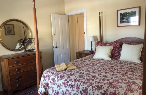 .Escape and be comfortable in this beautiful home setting on top of a hill overlooking Rockport Harbor. Furnished with incredible collection of antiques and Maine artwork! Enter through the front door to a cathedral ceiling foyer. Nestled in this charming coastal town, this phenomenal suite offers a serene retreat for guests. Enter through the first floor door to your own private space with a bedroom for 2 (queen bed) full bath; full large eat in kitchen and living space with attached sunporch that leads outside to the granite patio. With 1 bedroom featuring a tremendous queen bed, you'll have a cozy and comfortable space to unwind after a day of exploring. The bathroom is well-equipped with a hair dryer, ensuring you have everything you need. Other amenities include WiFi, a washing machine, dryer, iron board and an iron. A great place to call homebase while you're away, we hope you enjoy your stay.
