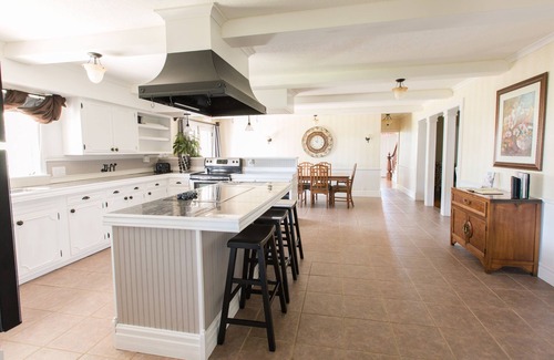For those who want to make the most of their time at the home, you may also cook your own meals in our gourmet kitchen or hire outside caterers. We have two ovens, two stoves, two refrigerators, a dishwasher, microwave, and ample counter space. We have dishes and silverware you may use as well.