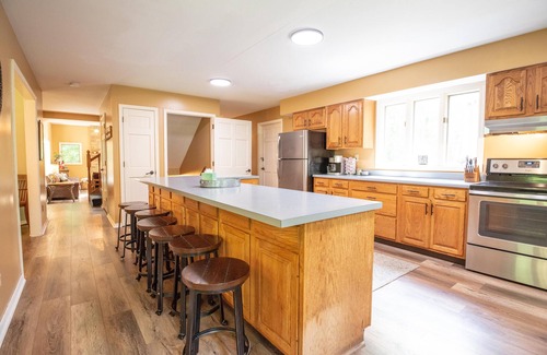 The price structure is based on the rate for four people. The king bed (main bedroom #1) and queen bed (bedroom #2) will be open for 2–4 guests. All other bedrooms will be locked. 5–6 guests: Double queen bedroom #3 will be unlocked. 7+ guests: Bunk bedroom #4 will be unlocked.
