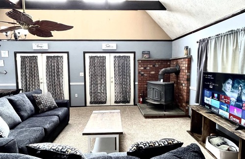 Entire Cozy Pocono Chalet with fireplace, Firepit BBQ and games | Ski Chalet in Long Pond