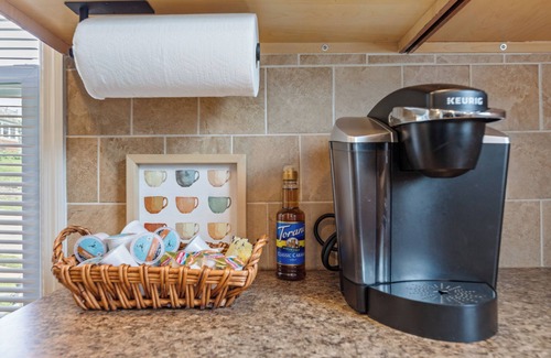 -Fully equiped kitchen with gas range, Keurig and coffee, dishwasher and everything needed for all your culinary adventures. Attached one car garage. NOTE: A new driveway will be installed August 10th so parking will not be available on drive/in garage until August 20th. Parking still available in back drive.