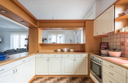 This specific apartment (130m2) on the first floor includes three bedrooms, two bathrooms, one living room, a fully equipped kitchen and opens to a spacious balcony. The apartment can host up to 6 people.