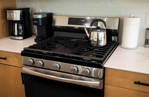 -Each cottage comes with a fully equipped kitchen. And when we say fully equipped, we mean it. Bake a pie or host a dinner party…it’s all there for you. We provide whole organic coffee beans as well as a grinder. You can choose to make a French press, have a pour over, or traditional drip, -whatever floats your caffeinated boat. We also have Keurig machines and provide a variety of pods. Not into coffee, we don’t judge. We also provide a selection of traditional, herbal and decaffeinated teas. A blender, bakeware, spices, and many kitchen gadgets are also provided. Not into cooking? No problem. The microwave works great and we also provide paper plates and plastic utensils if that’s more your speed.
